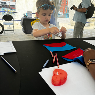 Over the years, we've attempted to create Juneteenth flag projects--with various results. We've tried paints with stencils, coloring sheets, tempera coloring sticks, and this year we're using felt! Pamela James has been so helpful once again! We spent a couple of hours in JoAnn Fabrics brainstorming options. I want y'all to know that I am not naturally crafty, but I'll stretch myself for these kids, lol! It was a great time and we met great museum staff, wonderful parents, and event professionals who happen to be aligned with Kidogo's mission!